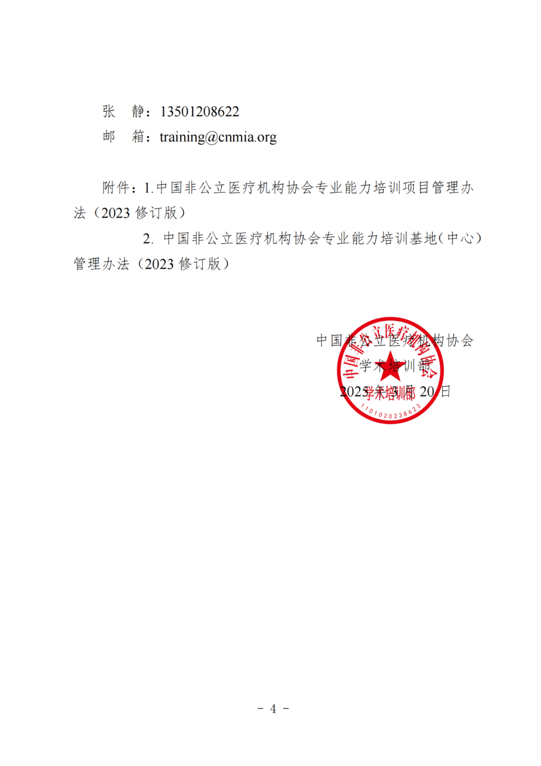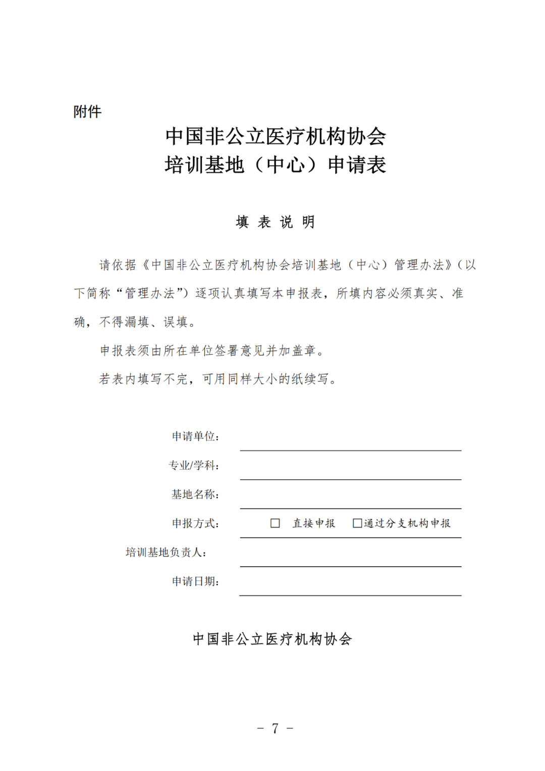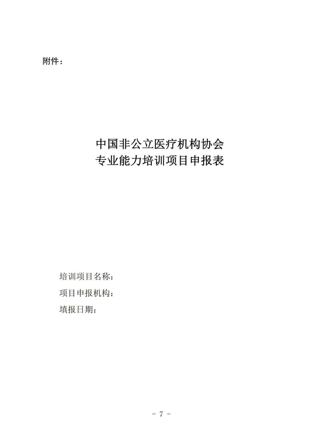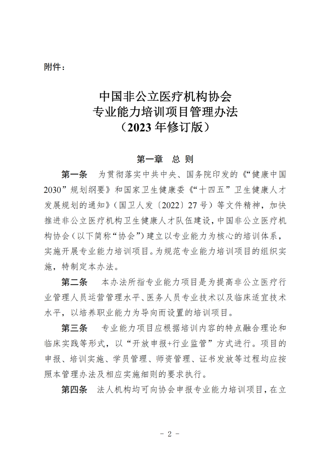 为贯彻落实中共中央、国务院印发的《“健康中国2030”规划纲要》和国家卫生健康委《“十四五”卫生健康人才发展规划的通知》(国卫人发〔2022〕27号)等文件精神,加快推进非公立医疗机构卫生健康人才队伍建设,中国非公立医疗机构协会(以下简称“协会”)建立以专业能力为核心的培训体系,实施开展专业能力培训项目。依据协会《专业能力培训项目管理办法(2023年修订版)》(中国非公医协〔2024〕1号)和《培训基地(中心)管理办法(2023年修订版)》(中国非公医协〔2024〕2号)规定,现公开征集2025年度专业能力培训项目及相关培训基地(中心),现将有关事宜通知如下:申报的专业能力培训项目和培训基地(中心)应符合国家法规、行业发展的实际需求,以培养学科建设和职业能力为导向。申报单位自愿承担专业能力培训项目的拓展工作,同时具备与申报标准要求相符合的资质与条件。培训内容包括但不限于非公立医疗机构的经营管理和医务人员专业技术以及临床适宜技术。专业领域申报范围包括但不限于内分泌、肝胆、消化、甲状腺、肿瘤、疼痛、妇产、儿科、皮肤科、整形美容、神经外科、耳鼻咽喉头颈外科、骨科、脊柱脊髓、泌尿外科、损伤与修复、血液病、生殖医学、核医学与分子影像、介入医学、消化内镜、健康体检、体外生命支持、全科医疗、护理、临床营养、基层医疗、麻醉、放射、超声、检验、重症、病理、口腔、泌尿外科、肥胖与代谢、微生态医疗、睡眠医学等临床管理与卫生技术,以及物联网医疗、健康管理、商业保险、临床工程、投融资管理、生物技术与细胞应用、人文医学、慢性病管理、医生集团建设、医院建设、健康传播与医学、卫生人才建设等有关内容。申报的专业能力培训项目应当具备扎实专业的教学内容与广泛的行业认可度。立项申请提交的资料必须符合《专业能力培训项目管理办法(2023年修订版)》中的相关要求。原则上只接受会员单位提报项目。协会培训基地是指以提高非公立医疗机构管理、运营和卫生专业技术人员能力为目的而选定的教育培训、临床实践、科研创新场所。申报的培训基地必须符合《培训基地(中心)管理办法(2023年修订版)》。原则上只接受会员单位申报。申报单位按照《专业能力培训项目管理办法(2023年修订版)》(见附件1)或者《培训基地(中心)管理办法(2023年修订版)》(见附件2)中的有关要求提交证明材料,并填写相关申报审批表。为简化申报流程,请各申报单位扫描下方二维码进行预申报。