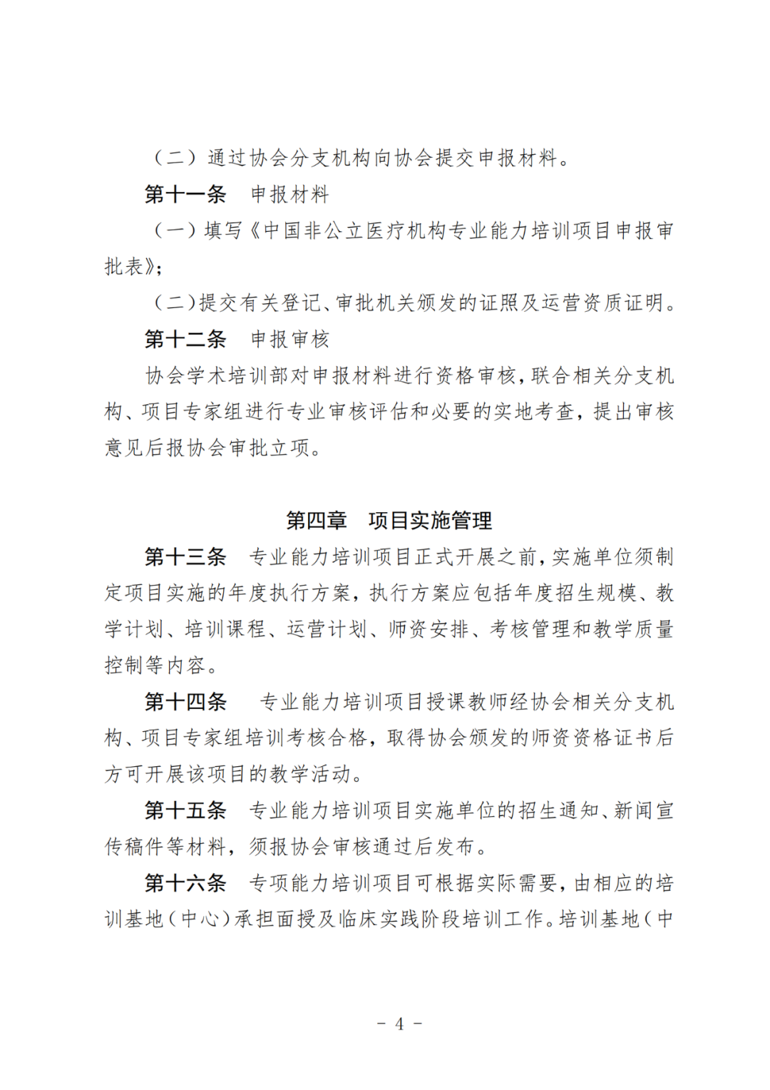 协会随时受理申报申请,进行动态管理。根据申报内容和年度安排审核。根据申报情况,由协会学术培训部联合协会相关分支机构对申报材料进行资格审核和专业评估,视情况组织实地考察。经评审专家评估通过后,确定立项的专业能力培训项目和获批的培训基地(中心)将在协会官网进行公示。1.中国非公立医疗机构协会专业能力培训项目管理办法(2023修订版)2. 中国非公立医疗机构协会专业能力培训基地(中心)管理办法(2023修订版)
