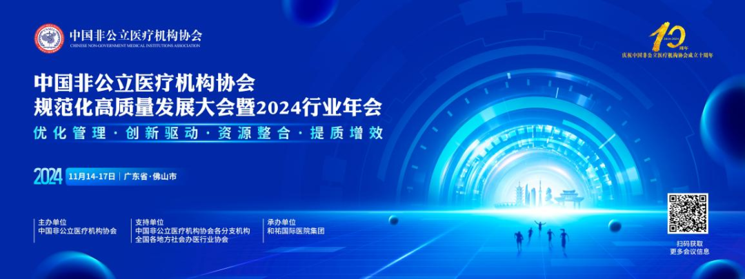 岁月如梭,初心不改。作为全国唯一从事非公立医疗卫生机构行业服务和管理的国家级行业组织,中国非公立医疗机构协会(以下简称“协会”)十载风雨兼程,始终致力于“健康中国”战略的实施。在协会成立十周年之际,为贯彻落实党的二十届三中全会精神和习近平总书记重要讲话精神,推进非公立医疗机构的规范发展,把握医改新机遇,定于2024年11月14-17日在广东佛山举办“规范化高质量发展大会暨2024行业年会”,旨在提升我国非公立医疗卫生机构的管理水平、服务能力及可持续发展,打造行业交流共享平台,推进行业向规范化高质量发展迈进。2024年佛山之约,我们期待与您共赴这场年度璀璨的行业盛会!3.大会主题二:DRG/DIP医保支付改革下标杆医院精细化运营和管理实践之路