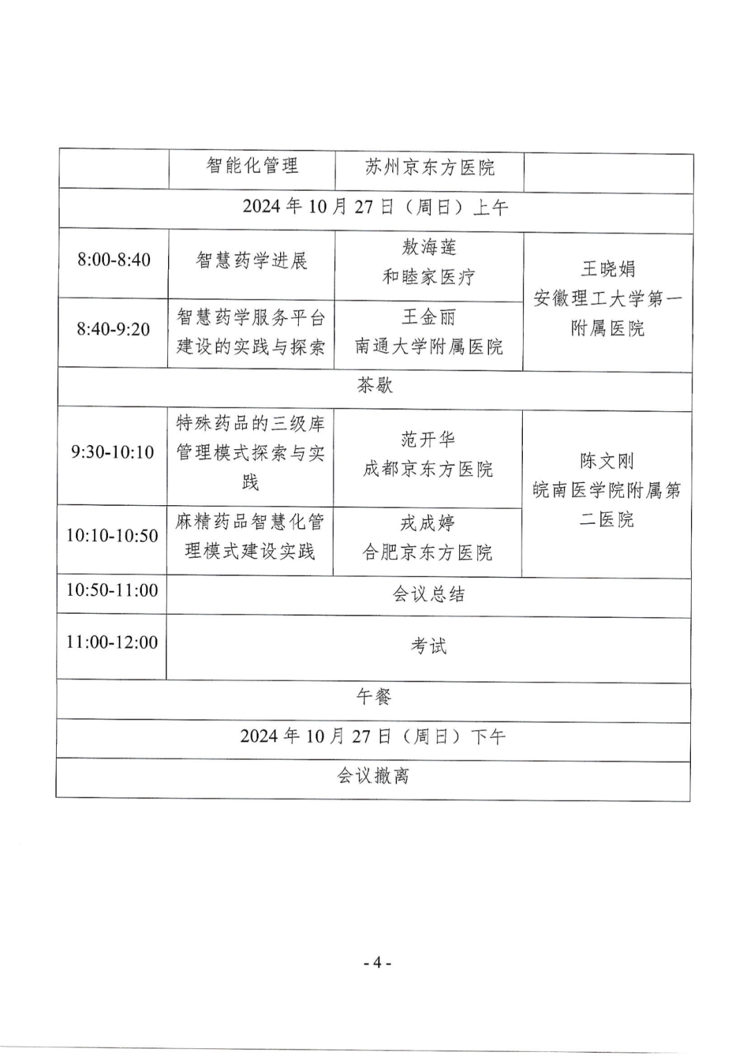 智慧药学是医院药学发展的必要趋势,是医院药学内涵式发展、药学服务转型的必由之路,更是奠定医院药学高质量发展的基石。其作为医院服务领域与现代科技相结合的前沿学科,正以独特的魅力和巨大的潜力推动着医药行业的创新与进步。为进一步提高医院药房管理水平,由合肥京东方医院举办的2024年度国家级继续医学教育项目——数智化药房建设与实践(2024-13-05-037(国))定于2024年10月25-27日在合肥举办。现将有关事项通知如下:本次会议将围绕智慧药学进展、标准解读、人才培养、应用场景等热点问题(具体内容详见附件1)。(二)会议地点:合肥京东方医院3楼国际会议厅(合肥市瑶海区东方大道1266号)。(一)会议报名:本次学习免会务费,统一安排住宿,住宿费和交通费自理。住宿酒店:新际大酒店(安徽省合肥市瑶海区文忠路2766号);(二)学分授予:本次培训班为国家级继续医学教育项目,项目编号:2024-13-05-037(国),全程参加学习且考核通过者将授予国家级继续医学教育I类学分3分。联系人:王倩18324725757,请将会议回执单于2024年10月24日之前发送到此邮箱:ahzyywq@163.com。