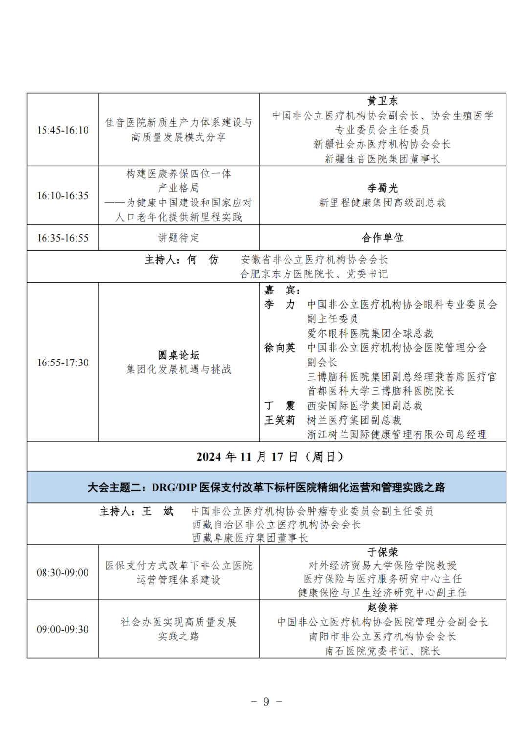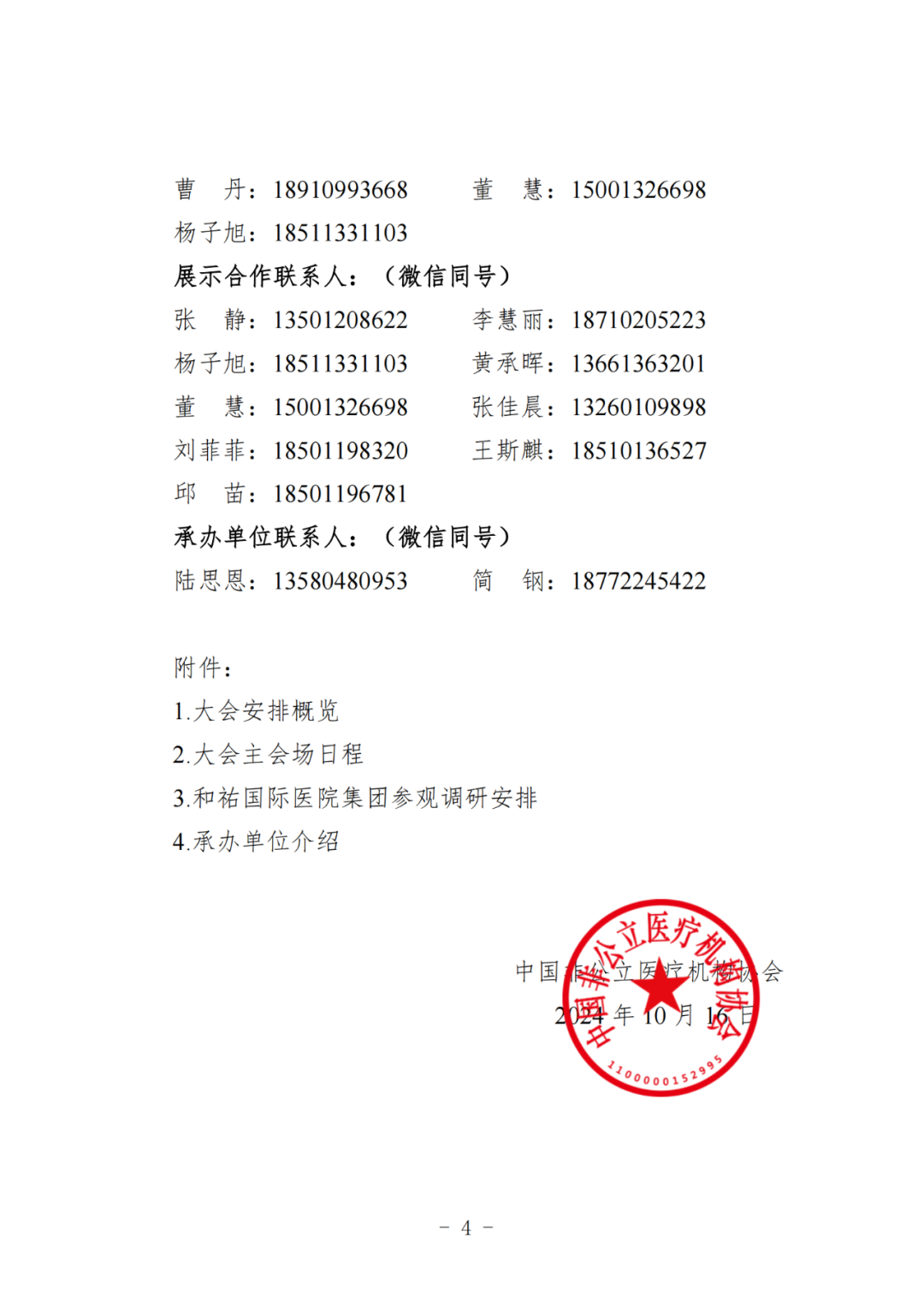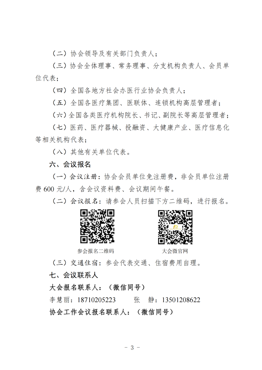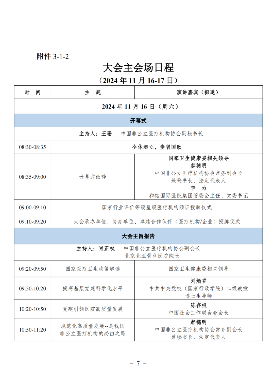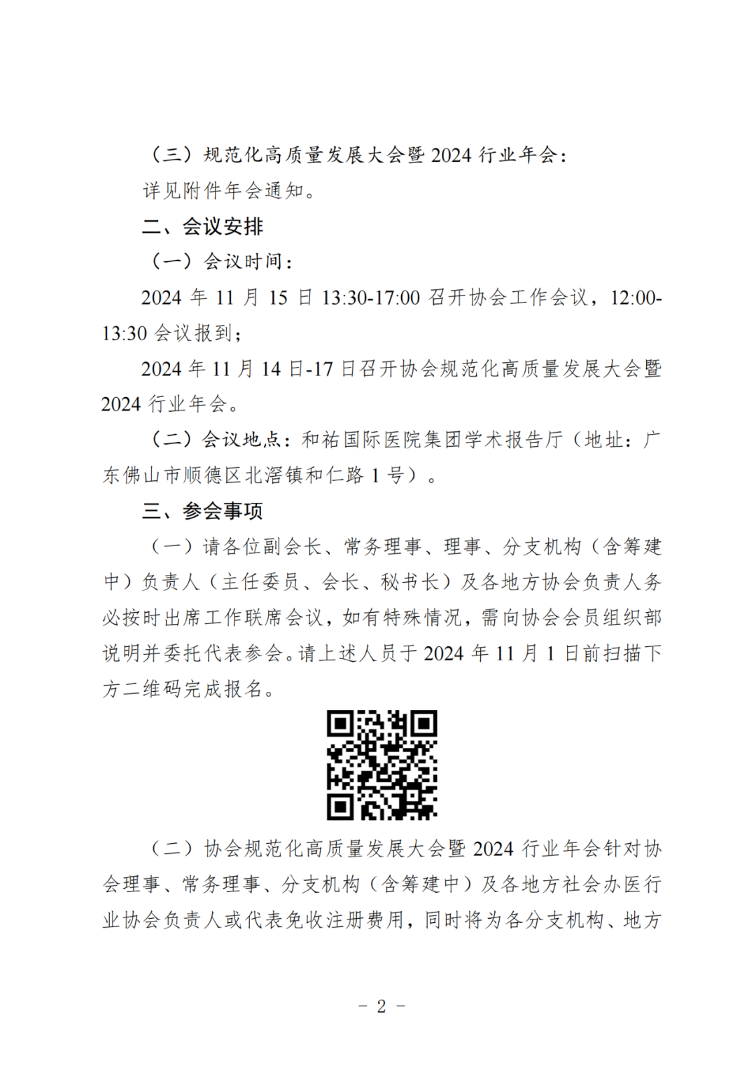 中国非公立医疗机构协会(以下简称协会)是经国务院批准成立,由依法获得医疗机构执业许可的非公立医疗机构、相关企事业单位和社会团体等有关组织和个人自愿结成的全国性、行业性、非营利性独立法人社团,也是全国唯一从事非公立医疗卫生机构行业服务和管理的国家级行业组织。协会党建人事领导机关为中央社会工作部,组织登记机关为民政部,业务管理机关为国家发展改革委、国家卫生健康委和国家医疗保障局。根据协会章程有关规定及上级主管部门有关工作要求,现启动换届工作。为贯彻落实民主办会原则,依章依规有序做好理事会换届筹备工作,现面向会员单位开展新一届理事会候选人申报工作。现将有关事项通知如下:(一)坚持党的路线、方针、政策,遵守国家法律法规;(二)理事候选人所在单位(非公立医疗机构、企业)须为协会单位会员,公立医院专家须为协会个人会员;(三)同一单位仅推荐一位理事候选人,被推荐人原则上是该单位的主要负责人;(四)具备相应的专业知识、经验和能力,熟悉行业情况,具有良好声誉形象和行业影响力;(六)组织协调能力强,热心协会工作,能够按时参加理事会议,积极建言献策、参与支持协会各项活动,志愿为行业发展贡献力量;(七)无法律法规、国家政策规定,不得担任的其他情形。请意向申请担任新一届理事会候选人的人员,认真填写《全国性行业协会商会人员审批审核表》(附件1),填表说明及样表参见附件2,并于2024年10月31日前,将签字盖章的扫描件及填写完成的ExceL版本发送至联系邮箱,纸质版原件快递至联系地址(注:原第一届理事会成员,如有意愿参选新一届理事会的,仍须重新申报)。(一)协会换届筹备工作领导小组在充分酝酿协商的基础上,经会员单位自愿申请、听取各方意见后,综合评议提出候选人建议名单,接受上级主管部门相关审查,最终提交第二届会员代表大会审议,投票选举产生协会新一届理事会。(二)新一届理事会候选人将有机会受邀列席协会一届十一次理事会暨十八次常务理事会议。会议通知见附件3。联系地址:北京市西城区西直门南大街2号成铭大厦C座24层3. 关于召开一届十一次理事会暨十八次常务理事会议的通知