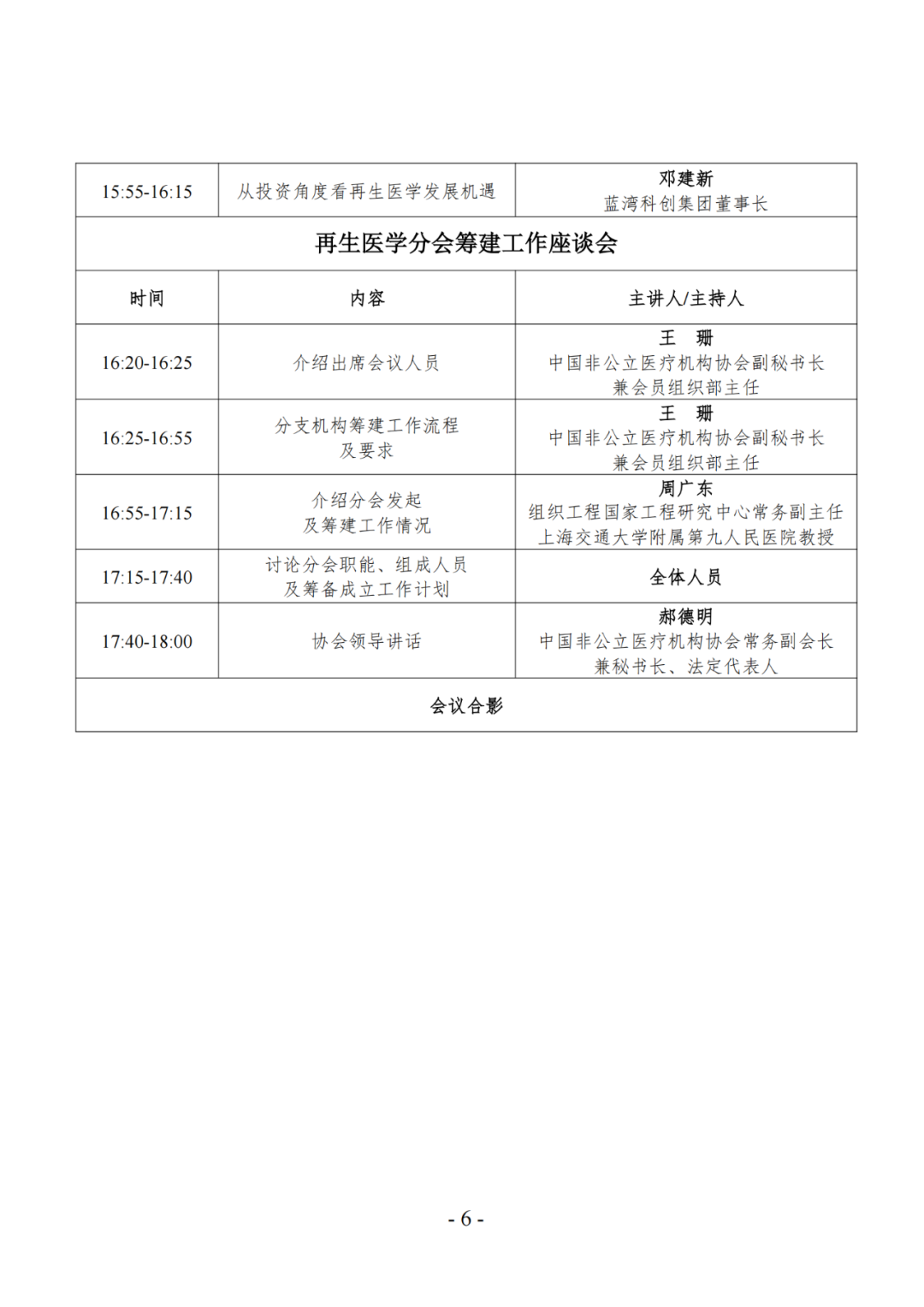 中国非公立医疗机构协会(以下简称协会)是经国务院批准成立,由依法获得医疗机构执业许可的非公立医疗卫生机构、相关企事业单位和社会团体等有关组织和个人自愿结成的全国性、行业性、非营利性独立法人社团,也是全国唯一从事非公立医疗卫生机构行业服务和管理的国家级行业组织。协会党建人事领导机关为中央社会工作部,组织登记机关为民政部,业务管理机关为国家发展改革委、国家卫生健康委和国家医疗保障局。目前,协会已正式成立75个全国性分支(代表)机构。为搭建再生医学领域专家、医疗机构和相关企业交流合作的平台,促进学术交流,推动研发创新,引领专业发展,经研究,中国非公立医疗机构协会定于2024年11月16日在佛山市举办“再生医学创新发展论坛暨再生医学分会筹建工作座谈会”。同期11月14-17日将召开“中国非公立医疗机构协会规范化高质量发展大会暨2024行业年会”,现将有关事宜通知如下:1.时间:2024年11月15日9:00-17:00;2.地点:和祐国际医院集团行政楼大厅(地址:广东佛山市顺德区北滘镇和仁路1号)。1.时间:2024年11月16日13:00-18:00;1.邀请国内知名专家学者围绕再生医学前沿成果、临床应用、新进展、新技术、新方法等进行专题讲座和学术交流;探讨再生医学在骨科、皮肤科、血液科等学科领域的应用与实践。2.展示再生医学领域科研成果、临床案例及创新实践,推动成果转化与实践应用;搭建再生医学相关新技术、新产品展示,为企业与医疗机构搭建交流合作平台。介绍非公立医疗机构发展现状及协会工作开展情况;介绍分会发起及筹建工作背景;讨论分会工作职能、组成人员及筹建成立工作计划及其他有关事项。(三)再生医学领域相关医疗机构管理人员、医务人员;(一)会议注册:本次会议免收注册费,交通及住宿费用自理,请意向参会人员扫描下方二维码进行报名。