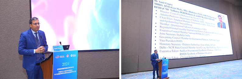 中国非公立医疗机构协会内分泌糖尿病专业委员会主任委员胡仁明致辞学术报告环节中,来自国内外相关领域专家分别就糖尿病、动脉粥样硬化、脂肪肝(MAFLD)肥胖、肠道细菌平衡等相关问题进行了精彩演讲,分享各自领域的前沿成果。印度糖尿病协会秘书长、美国 ADA 常务理事 Amit Gupta 率先带来了题为《印度糖尿病防治进展》的报告,深入介绍了印度在糖尿病防治方面的经验与成果,支持中国学者提出的“代谢性炎症综合征”,拓宽了与会者在国际糖尿病防治领域的新视野。