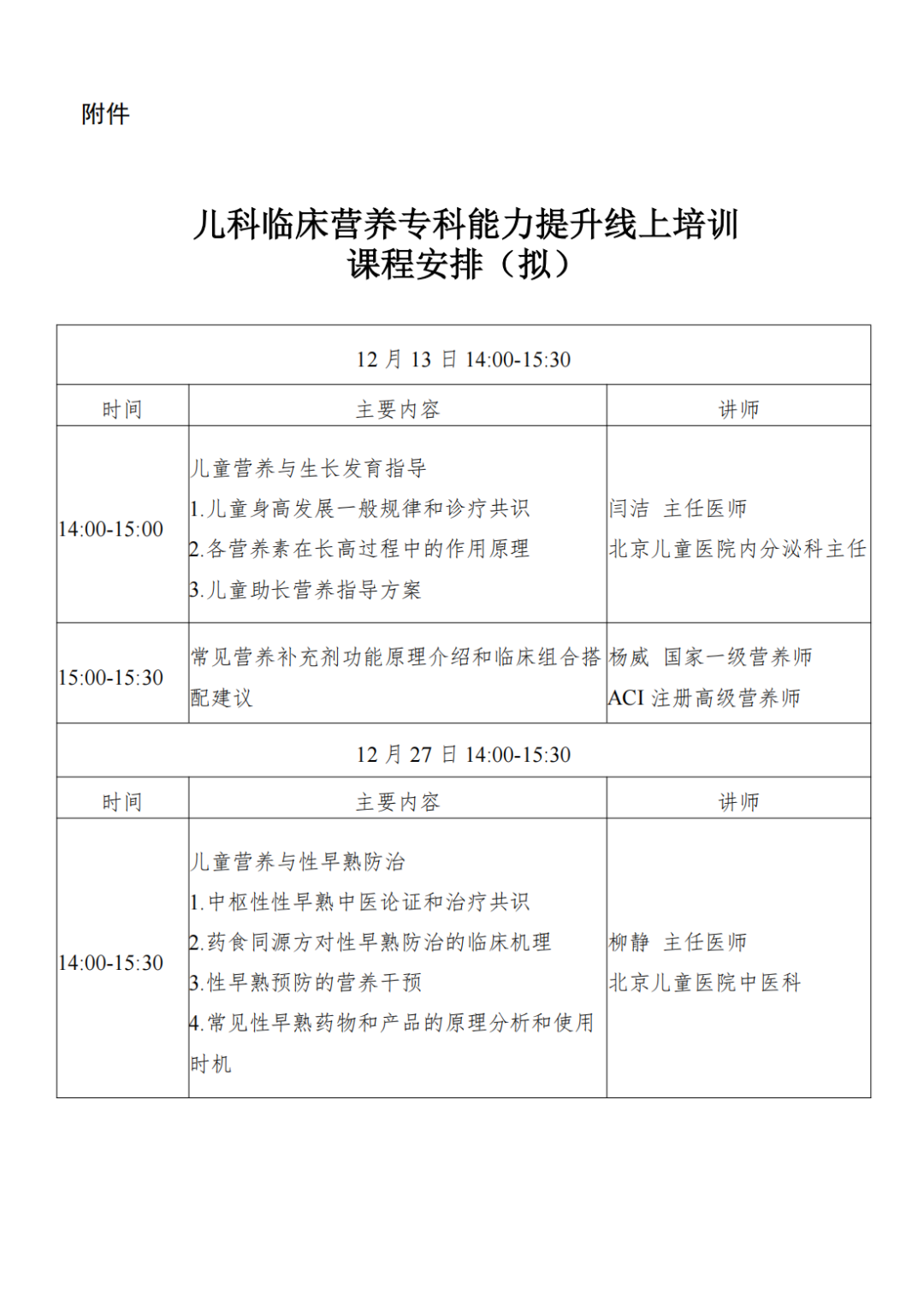 关于开展儿童临床营养专科能力提升线上培训活动的通知