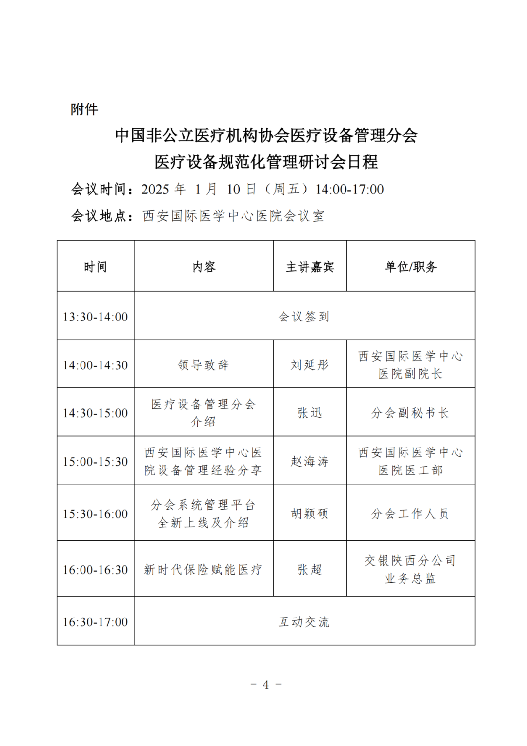 为贯彻落实《医疗器械监督管理条例》(国令第739号)、《医疗器械临床使用管理办法》(国家卫生健康委员会令第8号)等文件精神,发挥行业组织自律管理作用,促进医疗设备规范化管理,加强专业人才培养与队伍建设,中国非公立医疗机构协会(以下简称协会)医疗设备管理分会(以下简称分会)定于2025年1月10日在西安召开“医疗设备规范化管理研讨会”。现将会议有关事项通知如下:(一)学习和贯彻落实国家关于加强医疗设备管理的文件内容及最新政策法规解读。(三)非公立医疗机构医疗设备精细化管理解决方案及经验交流分享。(一)会议时间:2025年1月10日(周五)14:00-17:00;(二)会议地点:西安国际医学中心医院会议室(地址:陕西省西安市长安区西太路777号)。(三)医院管理、临床专科、医疗设备、医疗器械相关信息化负责人;(四)医疗机构、医疗设备企业分管负责人、部门负责人,医疗设备生产、经营和维修保养企业负责人;本次会议免注册费,了解医疗设备管理平台请扫描下方二维码: