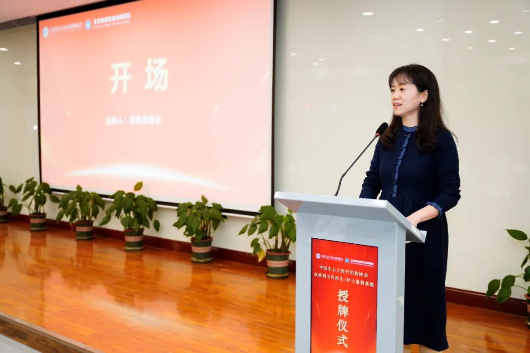 揭牌仪式由陆道培医院运营执行院长黄晓燕主持。黄晓燕介绍,陆佩华院长作为协会血液病专委会的主任委员,积极参与协会的各项工作任务。河北燕达陆道培医院作为协会国家级行业评价第一批参评单位,于今年再次完成复评工作,成功延续3A五星的好成绩。并在今年10月,参加协会组织的赴美医疗交流访学活动,与协会一起将中国非公医疗的形象向世界展示。血液病专委会于今年11月初在成都举办了“协会血液病专业委员会2024年学术年会”。陆道培医疗集团也在协会2024行业学术年会中,荣获 “2024卓越合作医疗机构”这一殊荣。今天,又迎来了“血液病专科医生/护士进修基地授牌”这一重要任务,协会始终是推动陆道培医疗集团规范化、高质量发展的领航者、带路人,集团一定不负各界期望,为行业做出更多的贡献。