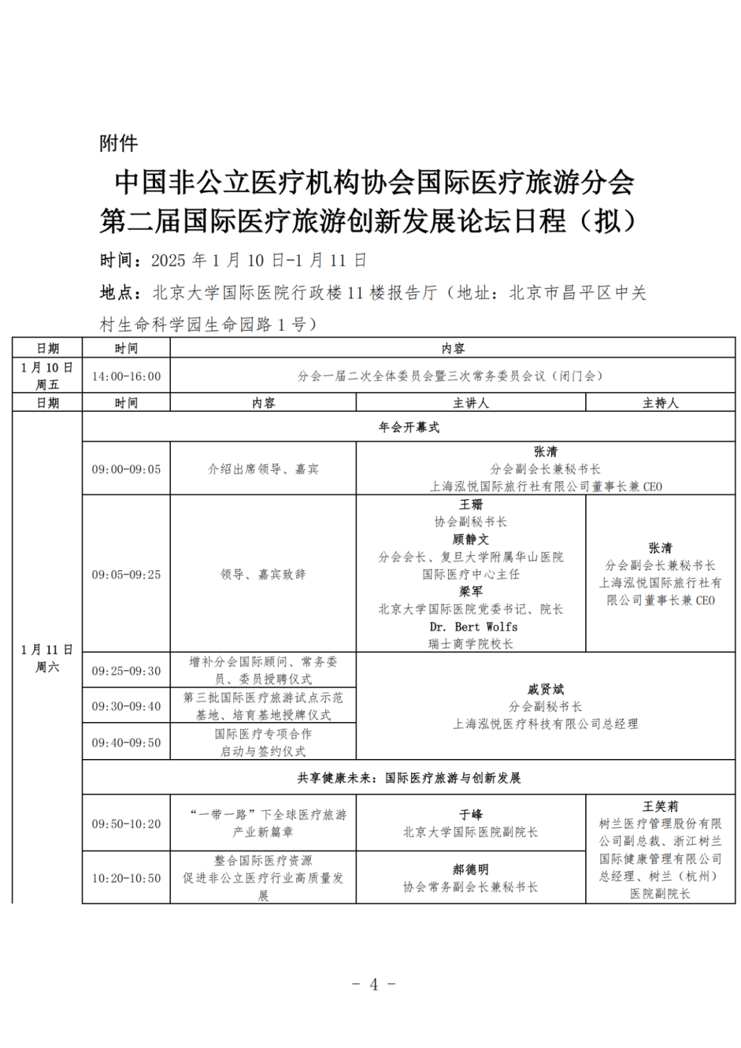 中国非公立医疗机构协会(以下简称“协会”)是经国务院批准、在民政部注册登记的,全国唯一从事非公立医疗卫生机构行业服务和行业管理的国家级行业组织。协会国际医疗旅游分会(以下简称“分会”)自2023年5月30日成立以来,在推动行业规范、促进国际旅游行业交流、培养专业人才等方面取得了显著成效,不仅为行业树立了新标杆,也为国际医疗旅游的健康发展提供了坚实的基础。为进一步推动国际医疗旅游领域交流与合作,促进医疗服务国际化发展,搭建国际医疗旅游业务平台,整合聚集海内外特色优质资源,探讨国际医疗旅游领域最新趋势、创新模式以及合作机会,经研究,兹定于2025年1月10-11日在北京市召开中国非公立医疗机构协会国际医疗旅游分会第二届国际医疗旅游创新发展论坛,现将会议有关事宜通知如下:1.一届二次全体委员会暨三次常务委员会议(闭门会)2.国际医疗旅游分会第二届国际医疗旅游创新发展论坛报到时间:1月10日 13:00-16:00,1月11日 7:30-9:00。(二)会议地点:北京大学国际医院行政楼11楼报告厅(地址:北京市昌平区中关村生命科学园生命园路1号)。(三)国际医疗旅游领域专家、学者、各医疗机构相关负责人;(四)医疗机构、中介机构、保险机构、旅游机构等相关单位代表。(一)会议注册:协会会员单位免会议注册费,非会员单位注册费200元/人,含会议资料费、会议期间午餐;(三)会议报名:请各位参会人员务必于2025年1月6日前扫描下方二维码报名。