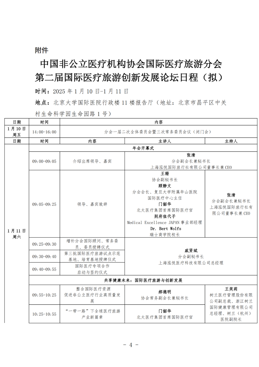 中国非公立医疗机构协会(以下简称“协会”)是经国务院批准、在民政部注册登记的,全国唯一从事非公立医疗卫生机构行业服务和行业管理的国家级行业组织。协会国际医疗旅游分会(以下简称“分会”)自2023年5月30日成立以来,在推动行业规范、促进国际旅游行业交流、培养专业人才等方面取得了显著成效,不仅为行业树立了新标杆,也为国际医疗旅游的健康发展提供了坚实的基础。为进一步推动国际医疗旅游领域交流与合作,促进医疗服务国际化发展,搭建国际医疗旅游业务平台,整合聚集海内外特色优质资源,探讨国际医疗旅游领域最新趋势、创新模式以及合作机会,经研究,兹定于2025年1月10-11日在北京市召开中国非公立医疗机构协会国际医疗旅游分会第二届国际医疗旅游创新发展论坛,现将会议有关事宜通知如下:1.一届二次全体委员会暨三次常务委员会议(闭门会)2.国际医疗旅游分会第二届国际医疗旅游创新发展论坛报到时间:1月10日 13:00-16:00,1月11日 7:30-9:00。(二)会议地点:北京大学国际医院行政楼11楼报告厅(地址:北京市昌平区中关村生命科学园生命园路1号)。(三)国际医疗旅游领域专家、学者、各医疗机构相关负责人;(四)医疗机构、中介机构、保险机构、旅游机构等相关单位代表。(一)会议注册:协会会员单位免会议注册费,非会员单位注册费200元/人,含会议资料费、会议期间午餐;会议报名:请各位参会人员务必于2025年1月10日前扫描下方二维码报名。