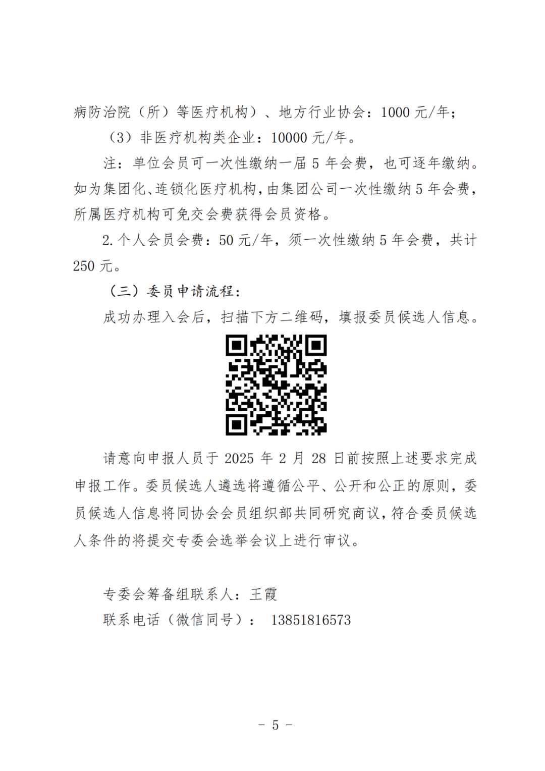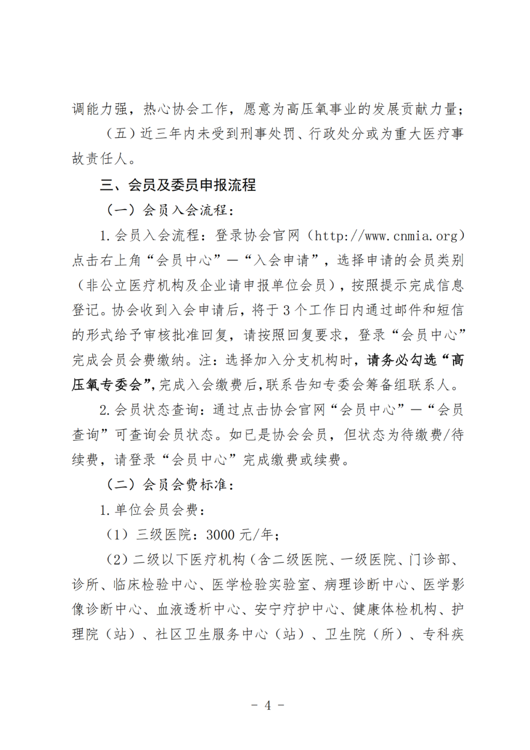 中国非公立医疗机构协会(以下简称“协会”)是经国务院批准成立,由依法获得医疗机构执业许可的非公立医疗卫生机构、相关企事业单位和社会团体等有关组织和个人自愿结成的全国性、行业性、非营利性独立法人社团,也是全国唯一从事非公立医疗卫生机构行业服务和行业管理的国家级行业组织。协会党建和人事领导管理机关为中央社会工作部,组织登记机关为民政部,业务管理机关为国家发展改革委、国家卫生健康委和国家医疗保障局。协会目前已正式成立84个全国性分支(代表)机构。近年来,高压氧在中国展现出巨大的发展潜力,为医疗健康领域注入了新的活力与变革。为充分发挥行业组织作用,促进我国高压氧领域的快速发展,经研究,协会决定筹建高压氧专业委员会(以下简称专委会),并面向全国启动专委会会员及首届委员会委员候选人招募工作,现将有关事宜通知如下:加入专委会后,专委会会员单位及委员单位(以下简称“专委会成员单位”),将获得如下权益与支持:(一)政策法规指导:为专委会成员单位提供高压氧治疗的相关政策法规指导,帮助成员单位更好地了解和遵守相关规定,确保业务运作符合法律法规。(二)规范标准指导:为专委会成员单位提供高压氧相关的规范标准指导,鼓励专委会成员单位牵头或参与制定相关的行业标准,为行业发展贡献智慧和经验。(三)科技项目创新:为专委会成员单位提供最新的科技项目创新成果,促进相关科研项目申报、科技项目合作等。(四)宣传推广机会:通过协会或专委会官方网站、期刊、媒体等渠道宣传展示专委会成员单位风采,提高专委会成员单位的知名度和影响力。(五)产业发展推动:依托专委会自身优势资源,促进产业链上下游企业之间的协作,企业之间的技术交流、信息共享与资源整合,携手推动高压氧领域产业高质量发展。(六)学术培训活动:专委会将定期举办学术会议、研讨会和专题讲座等活动,邀请国内外知名专家分享最新研究成果和临床经验。(七)促进学术交流和合作:为公立与非公立医疗机构搭建学术交流平台,促进同行合作,分享高压氧治疗科研进展与临床成果,推进非公立医院高压氧医学健康发展。(八)科技成果转化:为专委会成员单位搭建科技成果转化平台,汇聚专委会科研机构、企业、投资方等资源,提供高压氧技术对接、市场信息和合作机会,促进科技成果的落地转化。(一)委员候选人所在单位(非公立医疗机构、企业)须为协会单位会员,公立医院专家须为协会个人会员;(二)原则上二级以下医疗机构及企业推荐委员候选人不超过两位,三级医疗机构推荐委员候选人不超过三位,特别优秀者予以酌情考虑;1.公立医疗机构从事高压氧医疗领域等相关工作的专业技术人员,具有中级及其以上职称,或从事相关领域的科研人员,具有副高及其以上职称;2.在非公立医疗机构工作的全职或与非公立医疗机构长期合作的高压氧领域的相关人员,具有中级及其以上职称,或相关部门的管理人员,需担任副职以上职务;3.高压氧相关领域的企业界人士(高压氧舱设备、供氧系统、监测仪器、配套耗材、氧舱维护保养技术、高压氧治疗辅助软件等与高压氧相关的研发及制造企业),需担任高级管理职位及以上人员。(四)工作认真,作风正派,具有较高的专业素养,组织协调能力强,热心协会工作,愿意为高压氧事业的发展贡献力量;(五)近三年内未受到刑事处罚、行政处分或为重大医疗事故责任人。1.会员入会流程:登录协会官网(http://www.cnmia.org)点击右上角“会员中心”-“入会申请”,选择申请的会员类别(非公立医疗机构及企业请申报单位会员),按照提示完成信息登记。协会收到入会申请后,将于3个工作日内通过邮件和短信的形式给予审核批准回复,请按照回复要求,登录“会员中心”完成会员会费缴纳。注:选择加入分支机构时,请务必勾选“高压氧专委会”,完成入会缴费后,联系告知专委会筹备组联系人。2.会员状态查询:通过点击协会官网“会员中心”-“会员查询”可查询会员状态。如已是协会会员,但状态为待缴费/待续费,请登录“会员中心”完成缴费或续费。(2)二级以下医疗机构(含二级医院、一级医院、门诊部、诊所、临床检验中心、医学检验实验室、病理诊断中心、医学影像诊断中心、血液透析中心、安宁疗护中心、健康体检机构、护理院(站)、社区卫生服务中心(站)、卫生院(所)、专科疾病防治院(所)等医疗机构)、地方行业协会:1000元/年;注:单位会员可一次性缴纳一届5年会费,也可逐年缴纳。如为集团化、连锁化医疗机构,由集团公司一次性缴纳5年会费,所属医疗机构可免交会费获得会员资格。2.个人会员会费:50元/年,须一次性缴纳5年会费,共计250元。成功办理入会后,扫描下方二维码,填报委员候选人信息。