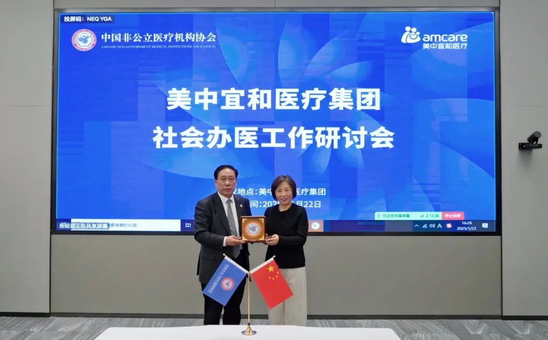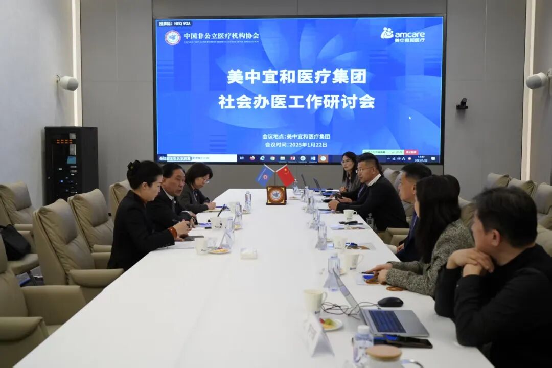 2025年1月22日下午,中国非公立医疗机构协会常务副会长兼秘书长郝德明、副秘书长王珊、学术培训部副主任张静一行到美中宜和医疗集团进行调研座谈。美中宜和医疗集团总裁、CEO胡澜、综合院区院长王磊、公共关系副总裁焦昕及负责医务和培训工作的相关部门负责人参会。